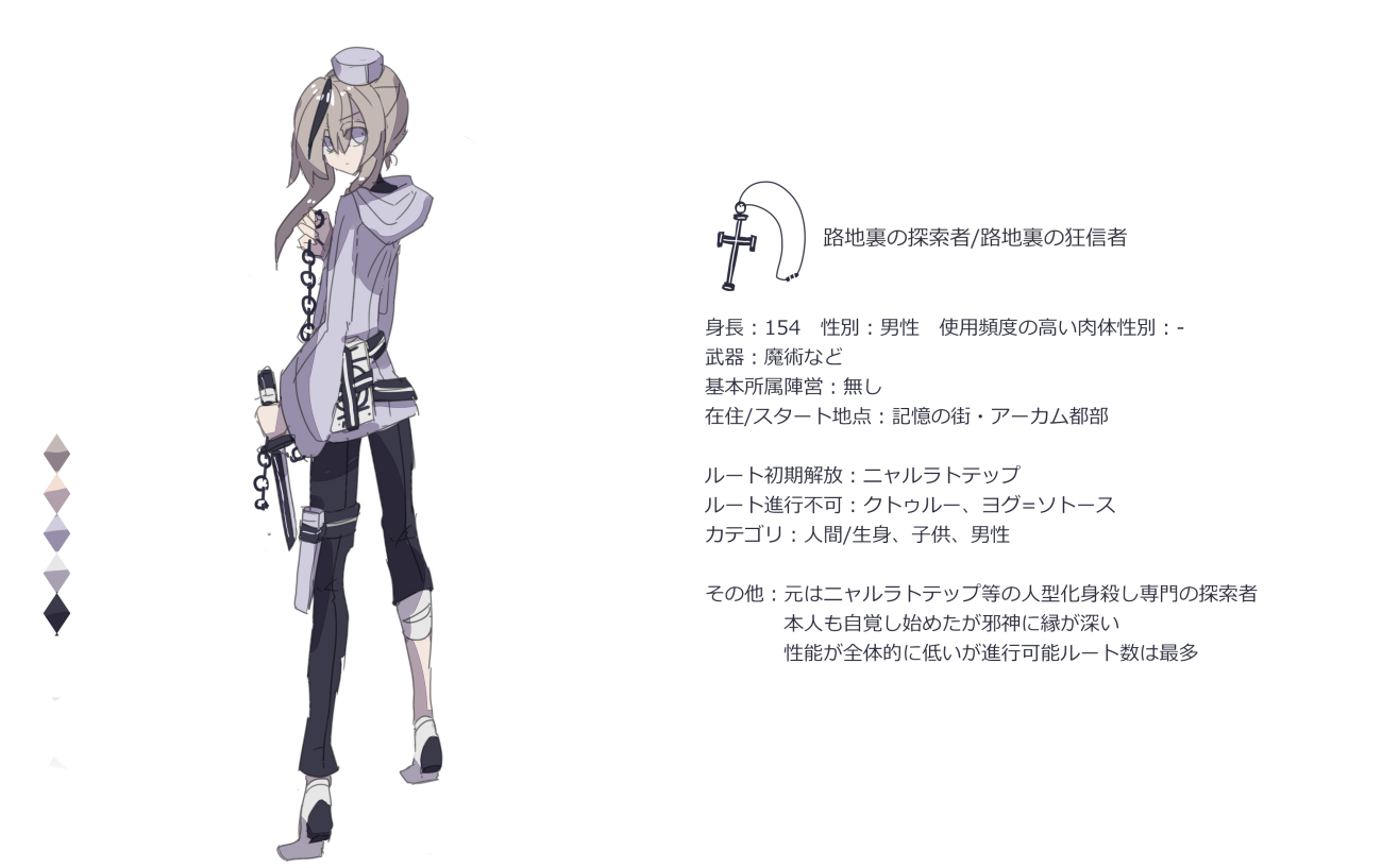 最初に選べる低スペックで攻略範囲広いプレイアブルのイメージの探索者♂くん 服装は無変更