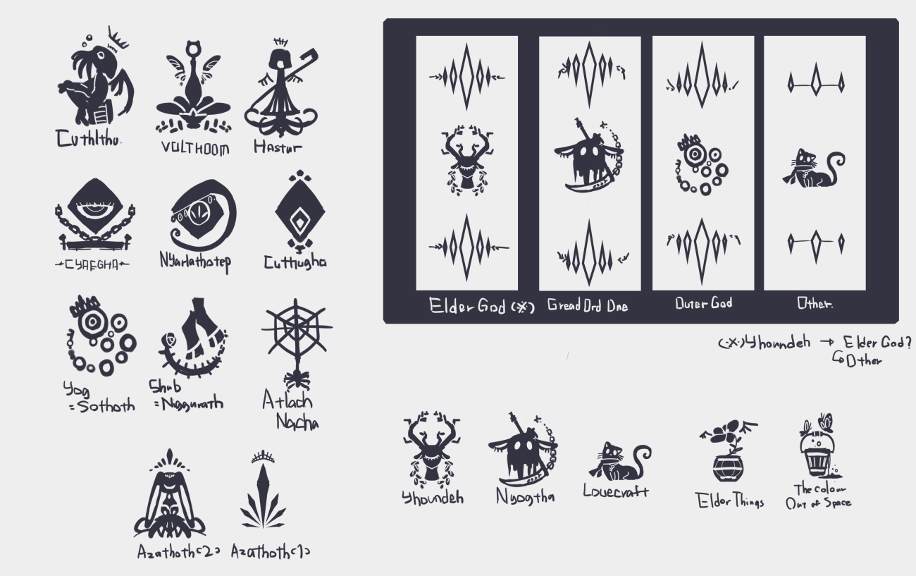 邪神勢後編 暗めの記号が増えたシアエガ様 記号的に肌の血色が落ちています